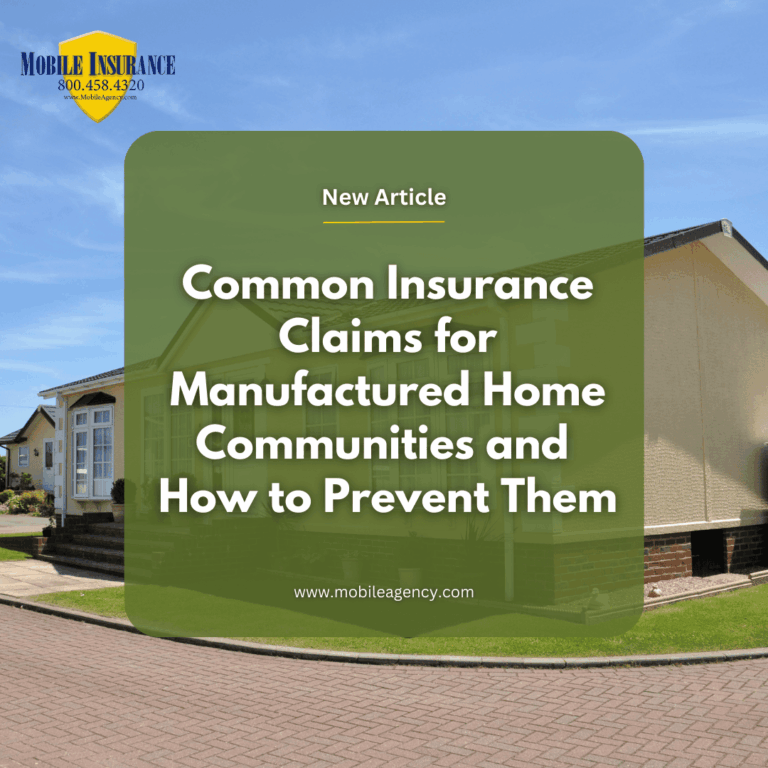 Owning a manufactured home community has its own unique set of risks. Putting measures in place to prevent accidents and reduce the damage will help keep costs low. From storm damage to liability lawsuits, insurance claims for manufactured home communities are often a result of preventable issues. Knowing the proactive steps to take to prevent these claims and mitigate damage will save you both time and money.